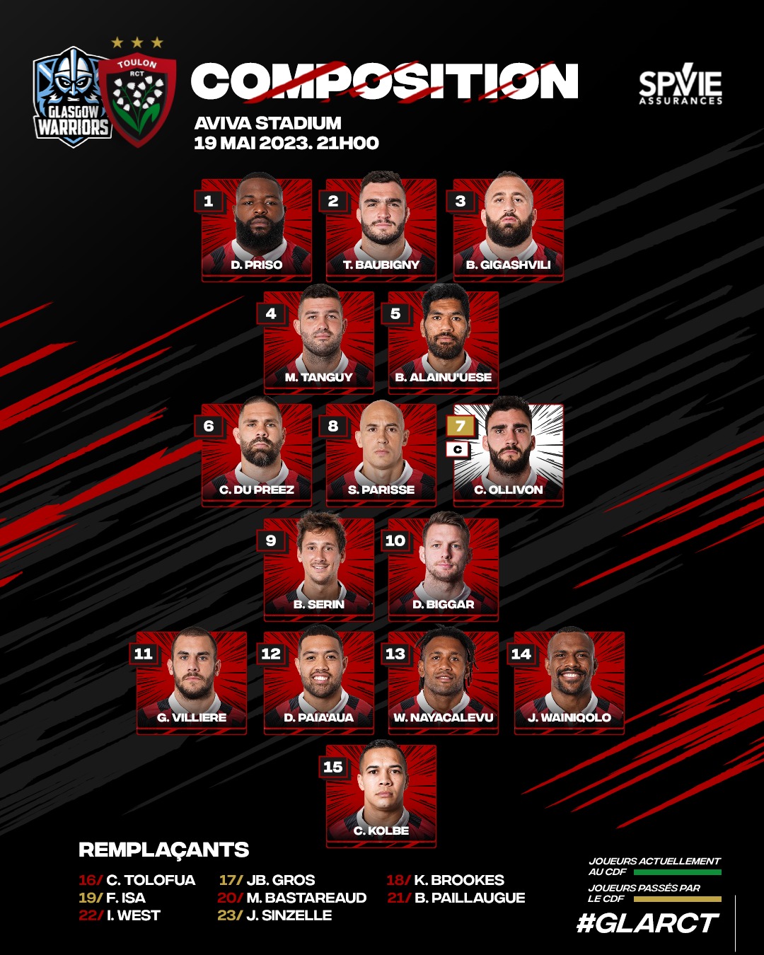 În componența celor două finaliste se află rugbyști de mare valoare. Toulon, de pildă, mizează pe „tripleta” Villière - Kolbe - Wainiqolo, iar la pupitrul de comandă se vor afla Serin și Biggar. De partea cealaltă, Glasgow Warriors, care a terminat pe locul 4 în campionat, are jucători care au apărat culorile Scoției. Jamie Bhatti (28 de selecții), Fraser Brown (61), Zander Fagerson (57), Scott Cummings (24), Matt Fagerson (33), Jack Dempsey (9), George Horne (20), Kyle Steyn (10), Sione Tuipulotu (16), Huw Jones (35), Sebastián Cancelliere (10) și Ollie Smith (3) sunt anunțați în XV-le de start.