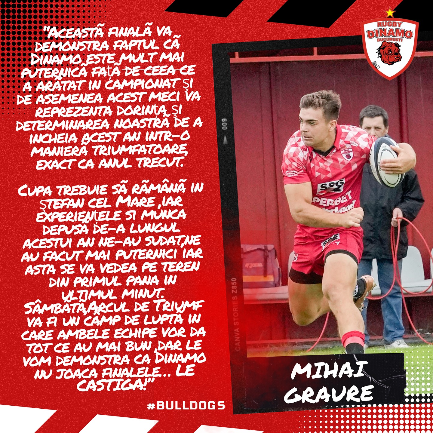 Remarcat în ultima vreme, Paul Mihai Graure dispută o nouă finală în tricoul lui Dinamo după cele din 2023. Jucătorul de treisferturi a declarat pe pagina de Facebook a grupării sale: „Această finală va demonstra faptul că Dinamo este mult mai puternică de ceea ce a arătat în campionat și, de asemenea, acest meci va repreznta și dorința și determinarea noastră de a încheia acest an într-o manieră triumfătoare, exact ca anul trecut. Cupa trebuie să rămână în Ștefan cel Mare, iar experiențele și munca depuse de-a lungul acestui an ne-au sudat, ne-au făcut mai puternici, iar aste se va vedea pe teren din primul până în ultimul minut. Sâmbătă, pe Arcul de Triumf va fi un câmp de luptă în care ambele echipe vor da tot ceea ce au mai bun, dar le vom demonstra că Dinamo nu joacă finalele. Le câștigă”.