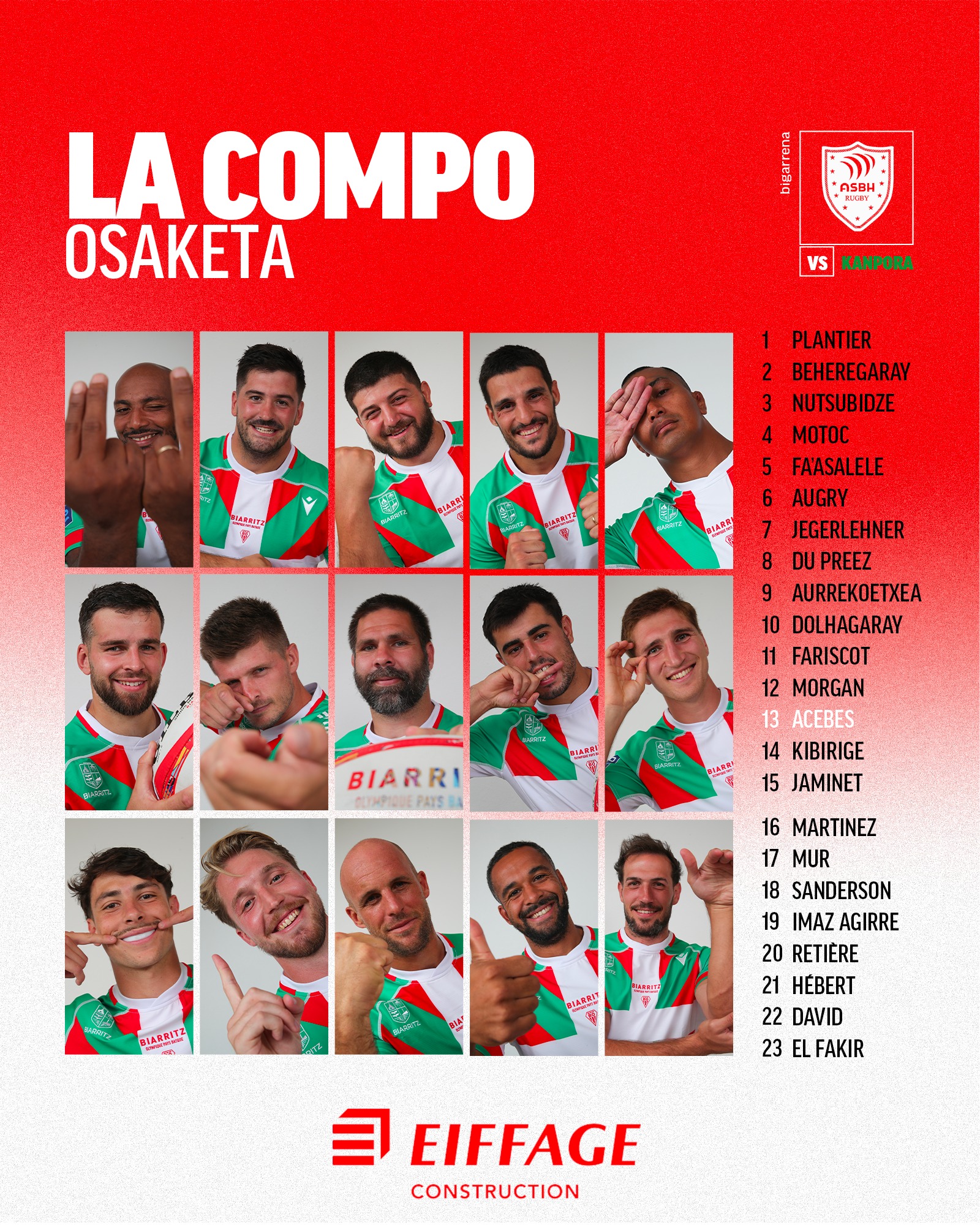 Biarritz: Jaminet - Kibirige, Acebes - Morgan - Fariscot - Dolhagaray - Aurrekoetxea - Du Preez, Jegerlehner, Augry - Faasalele, Motoc - Nutsubidze - Beheregaray - Plantier