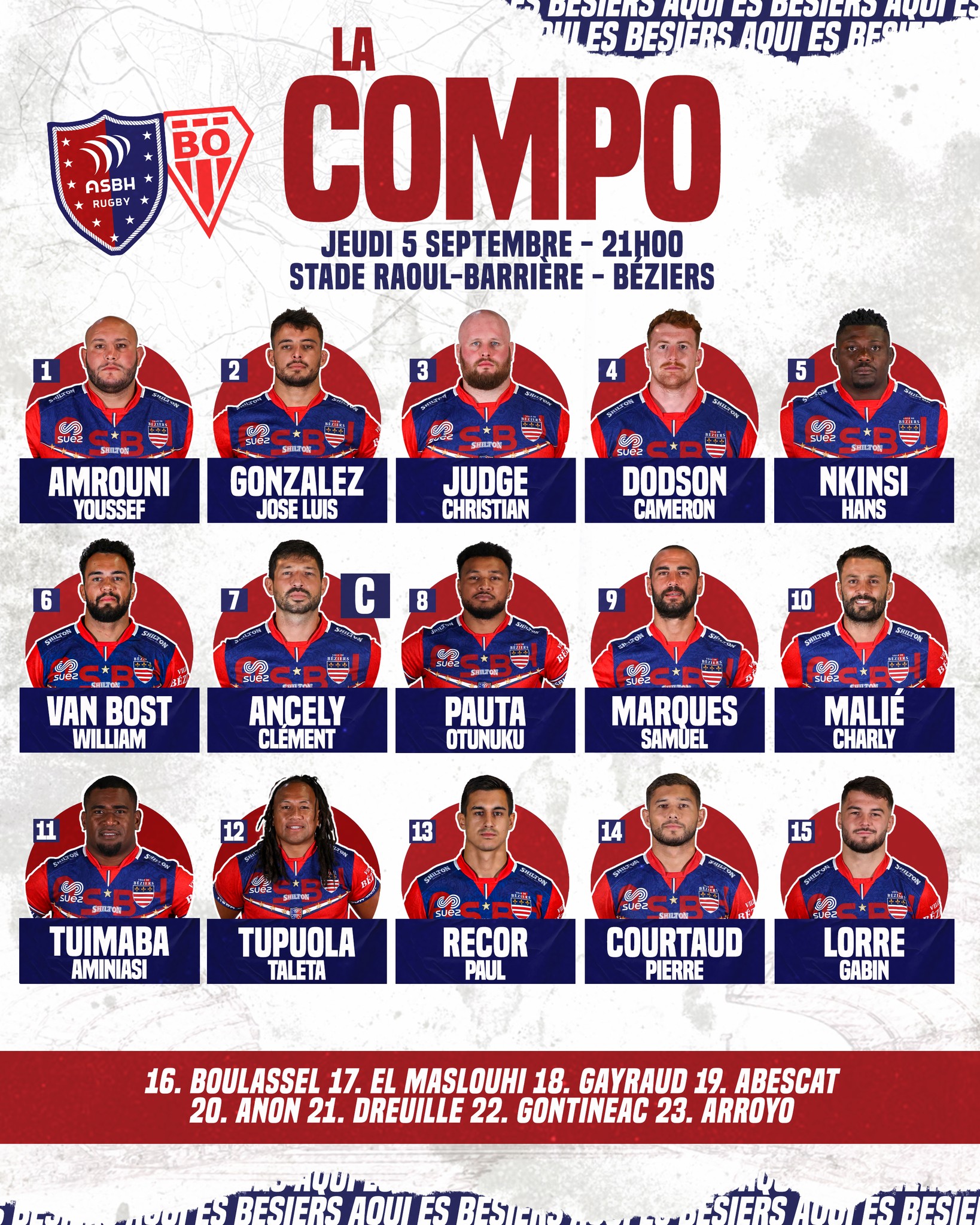 Beziers: Lorre - Courtaud - Recor, Tupuola - Tuimaba - Malié - Marques - Pauta, Ancely, Van Bost - Nkinsi, Dodson - Judge - Gonzalez - Amrouni