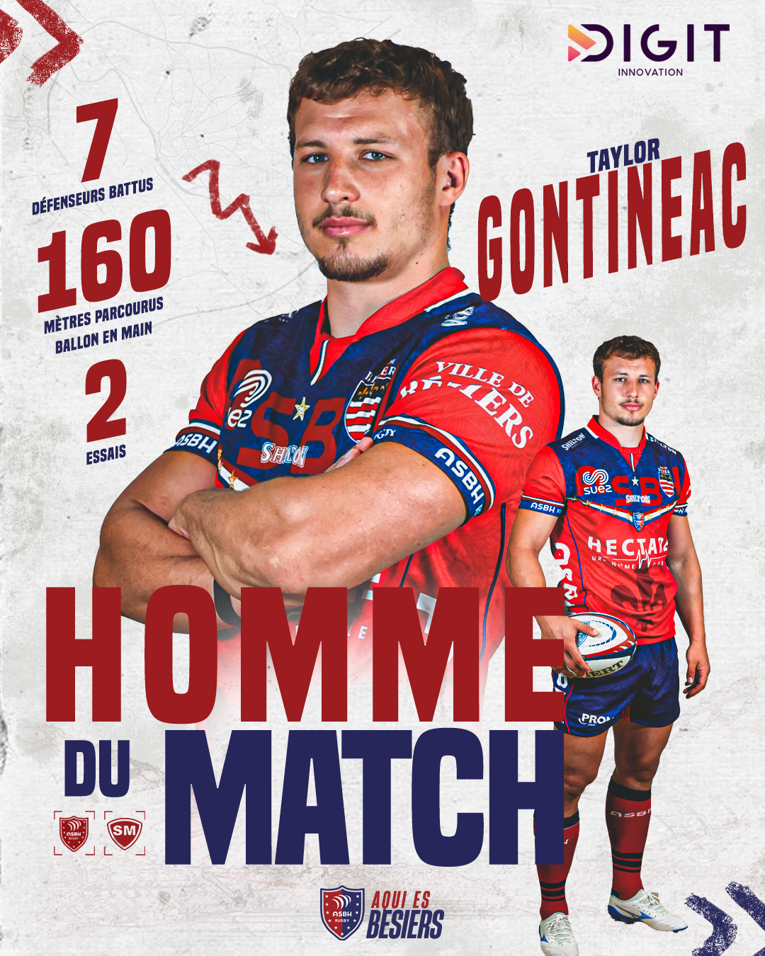 Taylor Gontineac a bifat meciul cu numărul 9 în ediția 2025/2026 a Pro D2, implicit 560 de minute jucate. În ediția precedentă (2024/2025), el a jucat 20 de meciuri pentru ASBH (1.182 de minute) și a marcat 25 de puncte (5 eseuri). Internaționalul român a ajuns la Beziers după evoluții foarte bune la Rouen Normandie Rugby, tot în Pro D2: 10 meciuri (576 minute jucate) și 20 de puncte înscrise (4 eseuri) în ediția 2023/2024, 18 meciuri (964 minute) și 15 puncte (3 încercări) în 2022/2023 și 22 de meciuri (1.076 minute) și 15 puncte (3 eseuri) în 2021/2022. În iarnă s-a scris că Taylor Gontineac va fi transferat la Castres Olympique, una dintre formațiile importante din prima ligă franceză (Top 14). Plecarea sa nu s-a produs, însă din câte se pare a fost doar amânată pentru la vară.