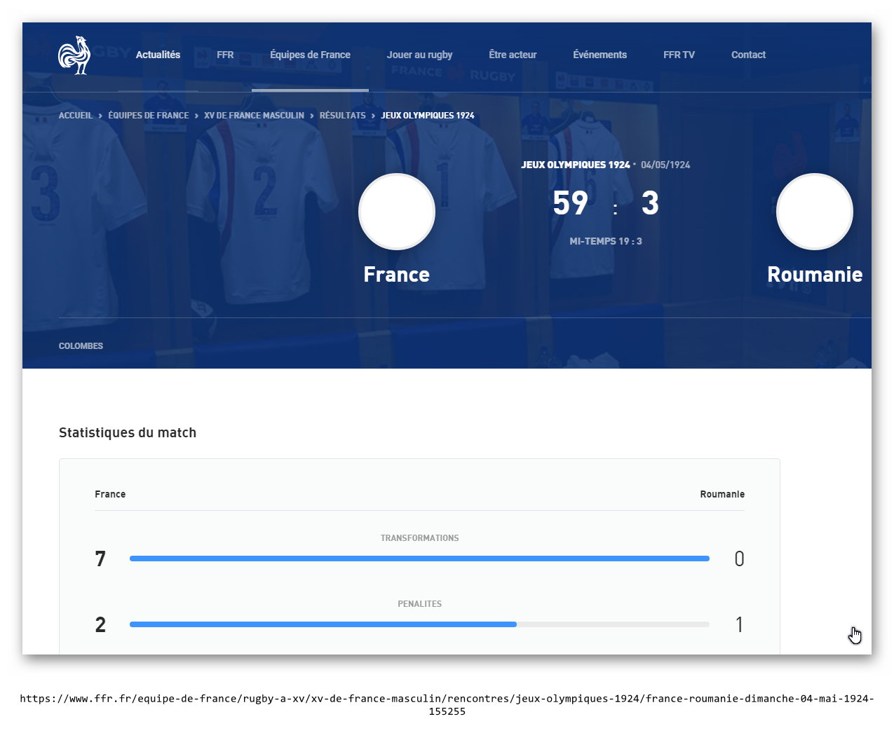 JO 1924 / ENIGMELE RUGBYULUI: Pe site-ul FFR apare că Franța a învins cu 59-3 România, iar CIO indică 61-3! Unde s-au pierdut două puncte?