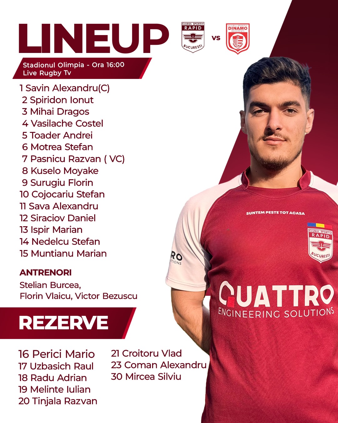 Ora 16.00: CSA Steaua București – CS Rapid București / TVR SPORT / RUGBY TV
