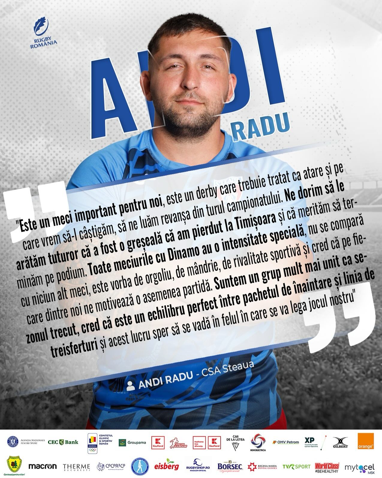 Supranumit „eternul derby”, meciul dintre CS Dinamo București (17 titluri de campioană) și CSA Steaua București (24 de titluri) va decide câștigătoarea medaliei de bronz în ediția 2025 a Ligii de Rugby Kaufland. În cursul sezonului regular, „Buldogii” au obținut o victorie categorică (50-25) chiar în Ghencea, în timp ce „Militarii” au dominat partida retur, scăpând succesul printre degete (a fost 27-27). Programată mâine (sâmbătă, 6 septembrie 2025), la ora 16.00, pe stadionul „Arcul de Triumf”, disputa se anunță extrem de echilibrată, așa cum a fost și în urmă cu un an, când Steaua s-a impus cu 36-30. În caz de egalitate după 80 de minute se vor juca două reprize de prelungire, iar dacă rezultatul va rămâne egal se vor executa lovituri de departajare. Tot mâine, la ora 11.00, pe stadionul Olimpia din Capitală, se va desfășura meciul pentru locurile 5-6, CS Rapid București - CS „U” ELBI Cluj. În finală, duminică, 7 septembrie 2025, la ora 16.00, tot pe „Arc”, se vor înfrunta SCM USV Timișoara, campioana en titre, și CSM Știința Baia Mare. Finala și meciul pentru „bronz” vor fi transmise de TVR Sport. (Foto: Dinamo Rugby / Steaua Rugby)