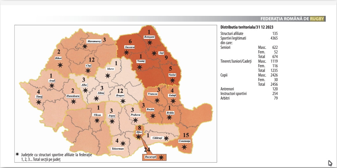de rugbyști sunt legitimați în Uruguay (în 2021). Spre comparație, în Anuarul Agenției Naționale de Sport din România, pe 2023, apare că la Federația Română de Rugby sunt legitimați 4.365 de rugbyști, dintre care 622 sunt seniori.