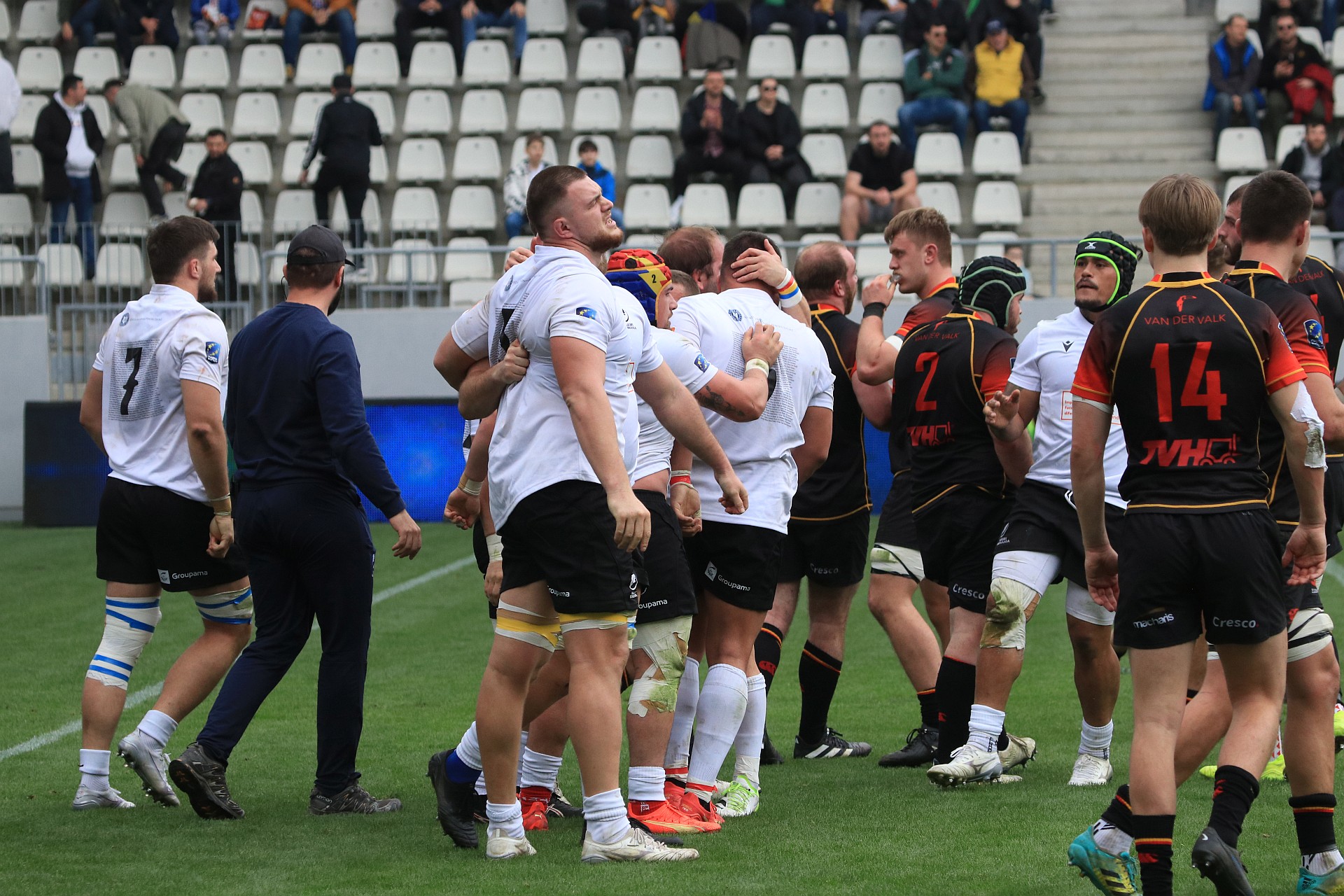 În primele 40 de minute de joc, Paul Popoaia, Mihai Graure și Dragoș Ser au suferit accidentări serioase. Primul a părăsit terenul susținut de doi membri ai staff-ului tehnic. Al doilea a avut probleme la cot, fiind transportat la spital. Iar Ser a fost făcut KO de un adversar după ce a dat un placaj (s-a lovit la cap de genunchiul belgianului...).