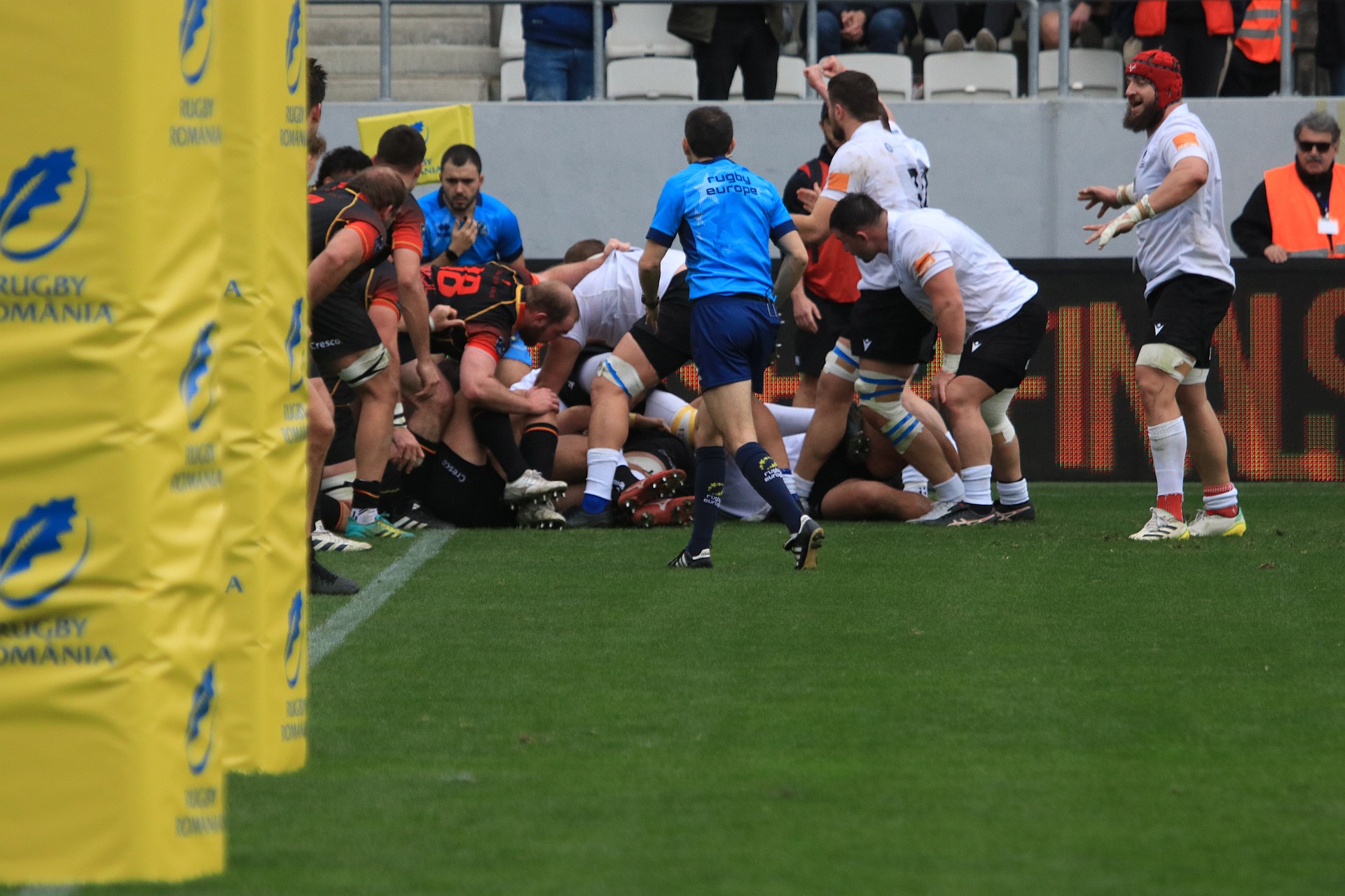 Mai apoi, după o serie de atacuri și grămezi ordonate, arbitrul spaniol Inigo Atorrasagasti a acordat echipei României un eseu de penalizare (min. 55, România - Belgia 26-6).
