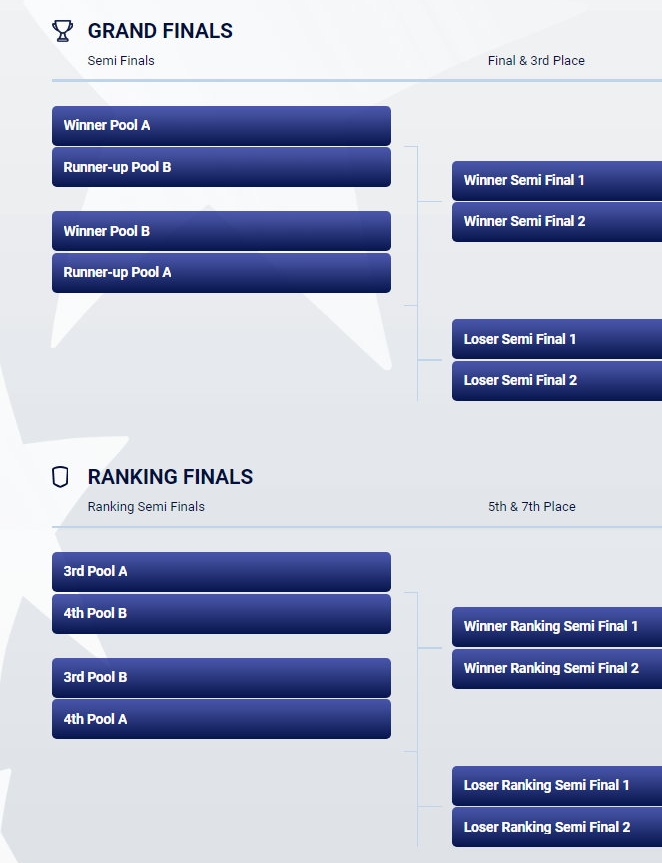 Sigur este că, încă de la startul Rugby Europe Championship 2024, cele opt formații participante știau că vor disputa semifinale după cele trei etape din grupe. Primele două clasate din cele două grupe vor juca semifinale pentru locurile 1-4 (Grands Finals, cum e intitulată pe site-ul Rugby Europe), în timp ce următoarele două clasate din cele două grupe (locurile 3 și 4) vor disputa semifinale pentru locurile 5-6 (Ranking Finals).