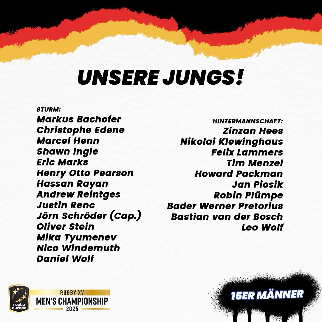 Antrenor al Germaniei, Mark Kuhlmann a recunoscut pentru site-ul oficial al federației de la Heidelberg că echipa sa pornește cu șansa a doua în REC 2025, însă a subliniat că în ediția de anul trecut s-au făcut meciuri bune cu Georgia (a pierdut cu 17-28, acasă) și cu Spania (a pierdut cu 5-27, la Madrid). „Desigur că ne așteaptă o provocare foarte mare. România și Portugalia, cu care ne confruntăm în faza preliminară, sunt cu siguranță favorite, iar cu Belgia nu suntem siguri de succes. Dar toate echipele pornesc cu aceeași șansă și vom face tot ce putem pentru a profita”.