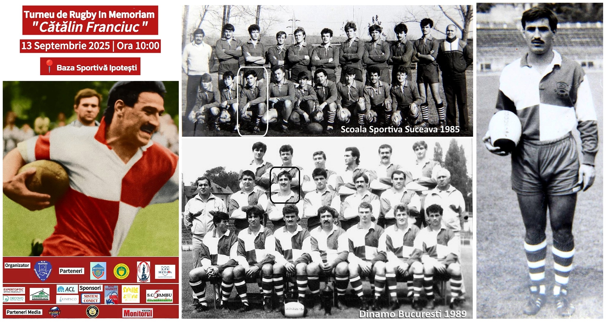 Asociația „Prietenii rugbyului din Bucovina” anunță organizarea unui turneu de rugby în memoria fostului internațional Cătălin Franciuc (1968-2016). Memorialul se va desfășura în 13 septembrie 2025, începând cu ora 10.00, la baza sportivă din localitatea Ipotești, județul Suceava. Se vor disputa meciuri de rugby la nivel de copii, dar și la oldboys. Cătălin Ilie Franciuc, s-a stins din viață în aprilie 2016, la numai 47 de ani, după doi ani de luptă cu o boală cumplită. Foști colegi de echipă de la CSM și CSȘ Suceava, Dinamo București și Universitatea Cluj, alături de familie, prieteni și vecini l-au condus pe Cătălin Franciuc pe ultimul drum spre cimitirul din localitatea sa natală, satul Tișăuți din comuna Ipotești.