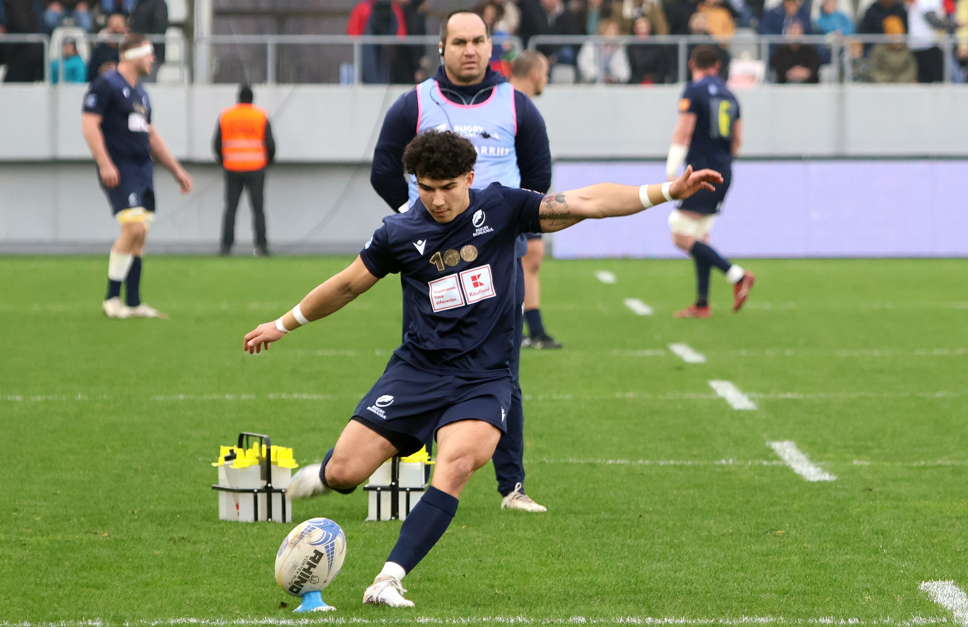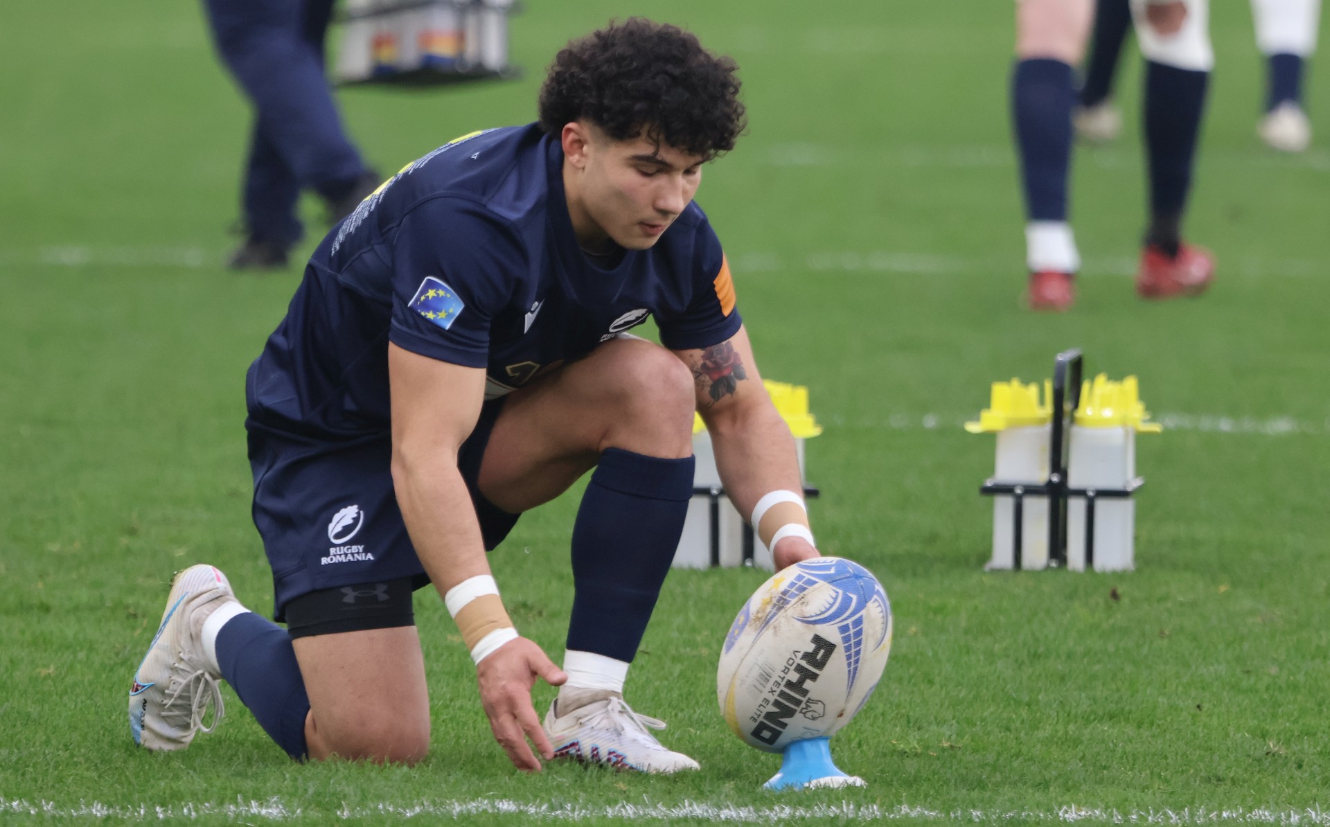 Alin Conache își așază balonul pentru a transforma o încercare în partida cu Portugalia / Foto: Marian Burlacu