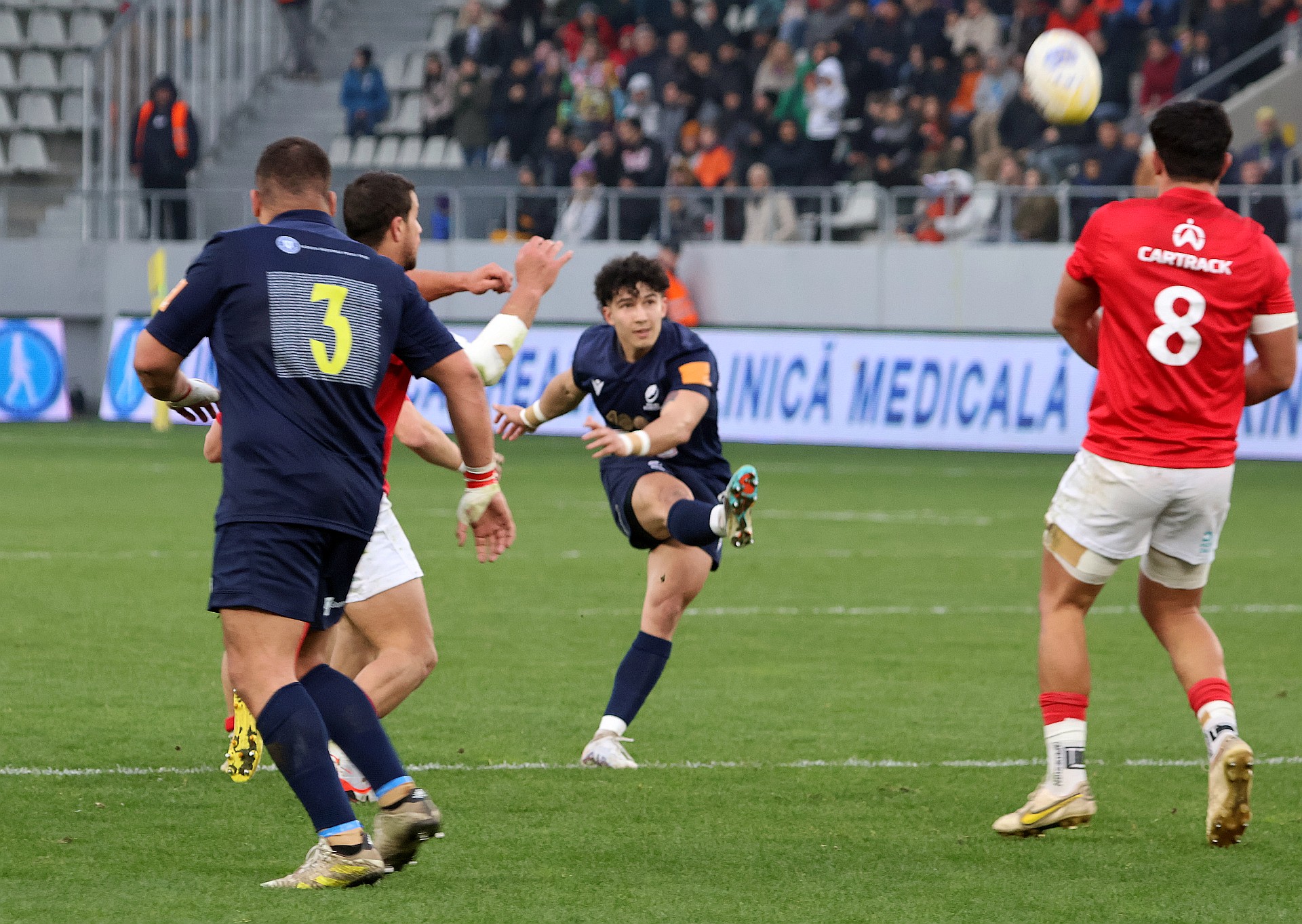 Multă vreme a trecut de când n-am mai văzut un dropgol reușit la echipa de rugby seniori a României. Și mă bucur că acest procedeu tehnic a fost folosit de tânărul Alin Conache (21 de ani). Și mai ales că balonul trimis de mijlocașul la deschidere al Stejarilor a trecut printre bețe, pe deasupra transversalei. Născut într-o familie de rugbyști, stelistul a adus astfel 3 puncte în contul Stejarilor în partida cu Portugalia (24-49), din etapa a treia a Rugby Europe Championship 2024. Lusitanii au ocupat locul 1 în Grupa B, iar în semifinalele turneului locurilor 1-4 vor primi replica Spaniei, la Lisabona. România, în schimb, va avea o deplasare extrem de dificilă în Georgia. Semifinalele REC 2024 se vor disputa într-o singură manșă, în 2 și 3 martie. (Foto: Marian Burlacu)