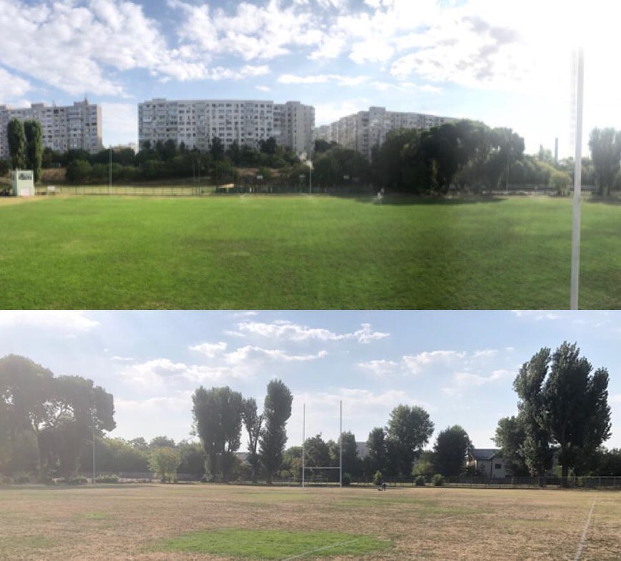 Mesajul este însoțit cu imagini în care se observă cum arăta terenul Olimpia înainte și cum arată acum.