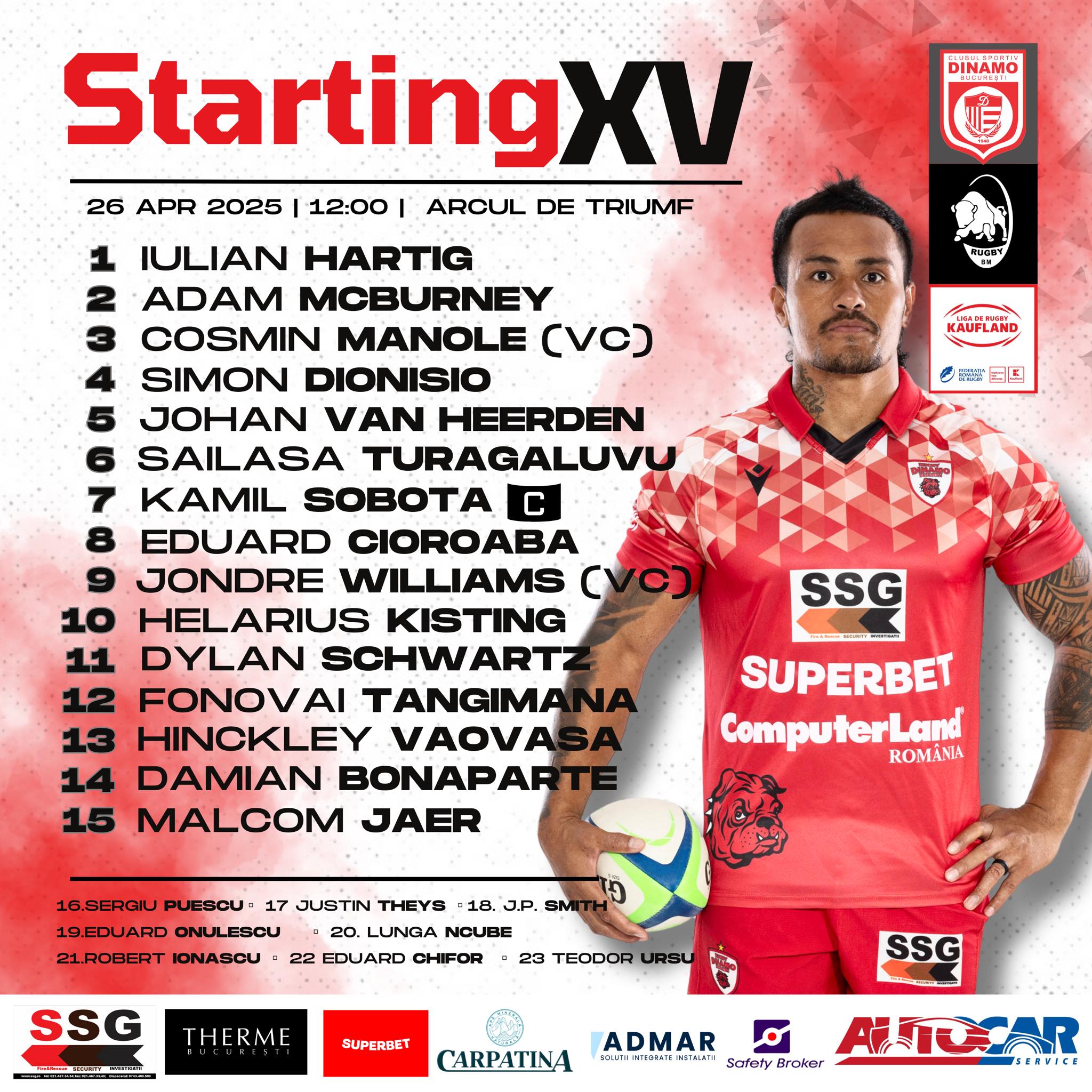 La o zi după meciul CSA Steaua București - CS Rapid București 24-22, meci de deschidere al rundei cu numărul 5 din Liga de Rugby Kaufland 2025, astăzi (sâmbătă, 26 aprilie 2025), sunt programate celelalte partide. La ora 11.00, pe Stadionul „Iuliu Hațieganu” din Cluj, campioana SCM USV Timișoara pornește favorită în fața lui CS „U” ELBI Cluj. O oră mai târziu, pe Stadionul „Arcul de Triumf” din București, într-o reeditare a finalei din 2023, CS Dinamo va primi replica lui CSM Știința Baia Mare. Ultima confruntare va fi transmisă de TVR Sport și Rugby TV. (Foto: Dinamo Rugby)