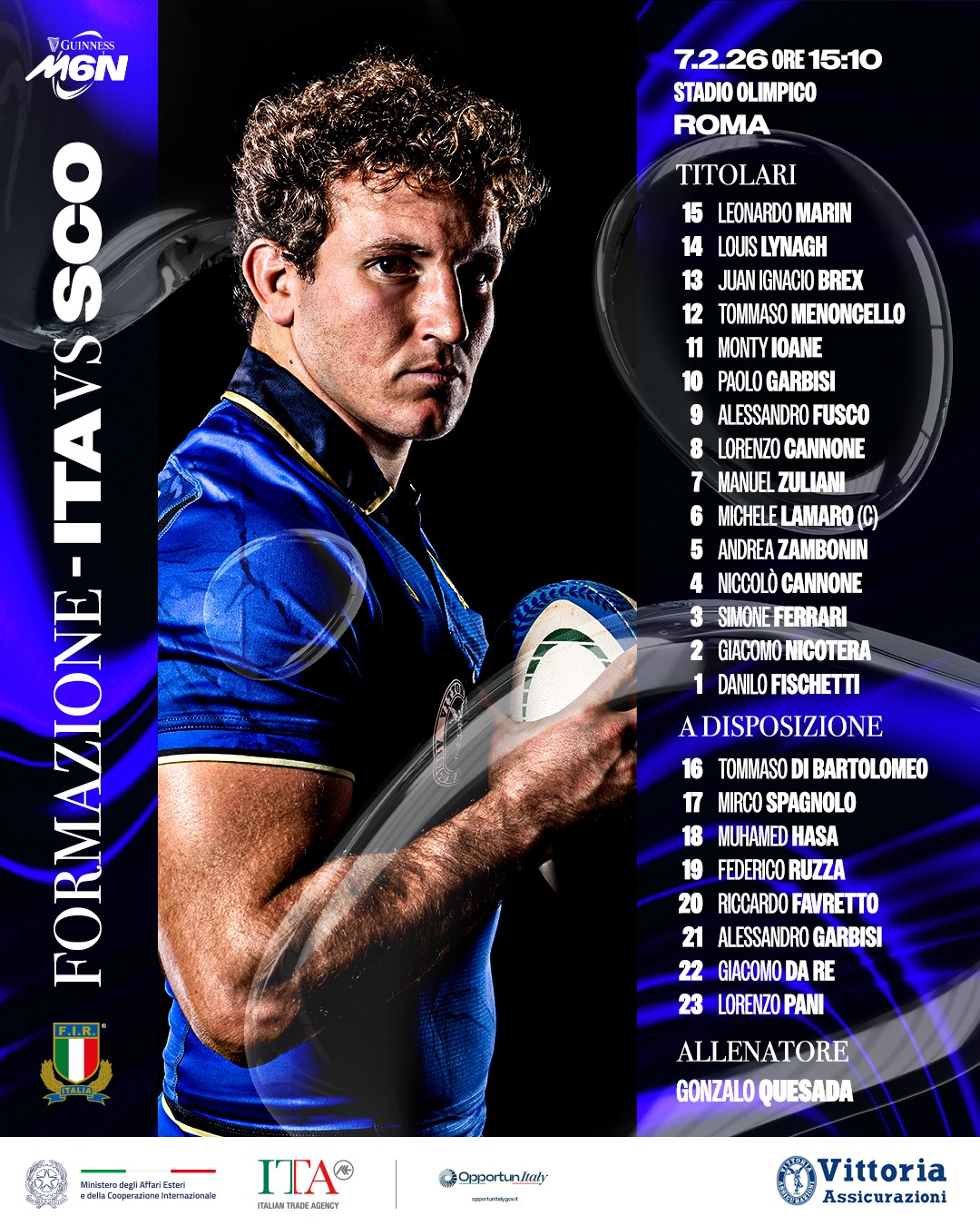 Pentru meciul de debut în ediția 2026 a Turneului celor 6 Națiuni, antrenorul Italiei, argentinianul Gonzalo Quesada, a fost nevoit să ia câteva decizii dure. Accidentat, Martin Page-Relo a fost înlocuit cu Alessandro Fusco pe postul de mijlocaș de grămadă, el urmând a conlucra cu Paolo Garbisi. Iar lista absenților nu se oprește aici. În aceeași situație sunt fundașul Ange Capuozzo, care s-a accidentat la un deget la sfârșitul lunii decembrie, și Tommaso Allan, care acuză dureri la brațul drept.