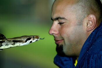 Nationala Romaniei a vizitat ieri "Reptile Park", unul dintre cele mai cunoscute parcuri de reptile din Australia. Cu gandul la irlandezi, primii lor adversari de la Cupa Mondiala, dar si la australieni, ai caror "omologi", cangurulul pitic, animalul de la care nationala Australiei si-a luat porecla "Wallabies", misunau prin parc, jucatorii formatiei noastre s-au fotografiat cu unele dintre cele mai periculoase reptile. Cei mai curajosi au fost Sorin Socol si capitanul Romeo Gontineac, care l-au hranit de la 1 metru pe crocodilul Eric, un veteran de 700 de kg si 5 metri lungime cu un soarece si o gaina, puse la dispozitie de ingrijitorii parcului. Sangele rece dovedit de George Chiriac, foto interior, nu mai necesita insa nici un comentariu.